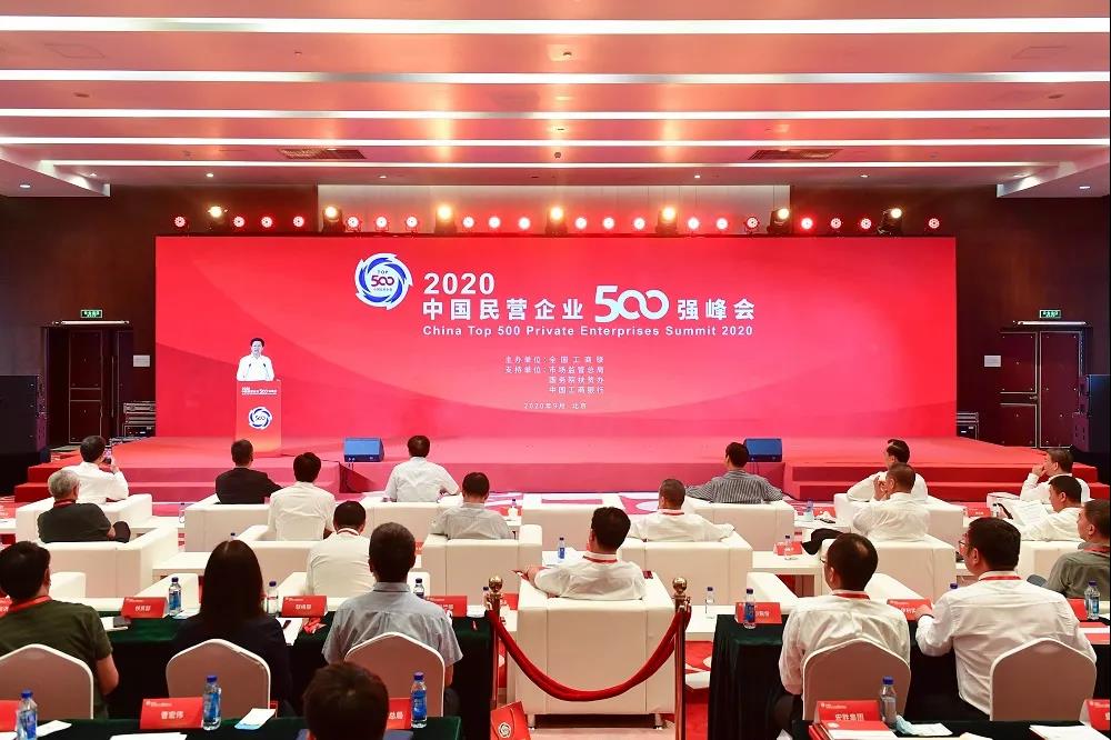 9月10日,由全国工商联主办,市场监管总局、国务院扶贫办、中国工商银行支持的2020中国民营企业500强峰会在京举行。会上,全国工商联发布了“2020中国民营企业500强”、“2020中国制造业民营企业500强”等荣誉榜单。