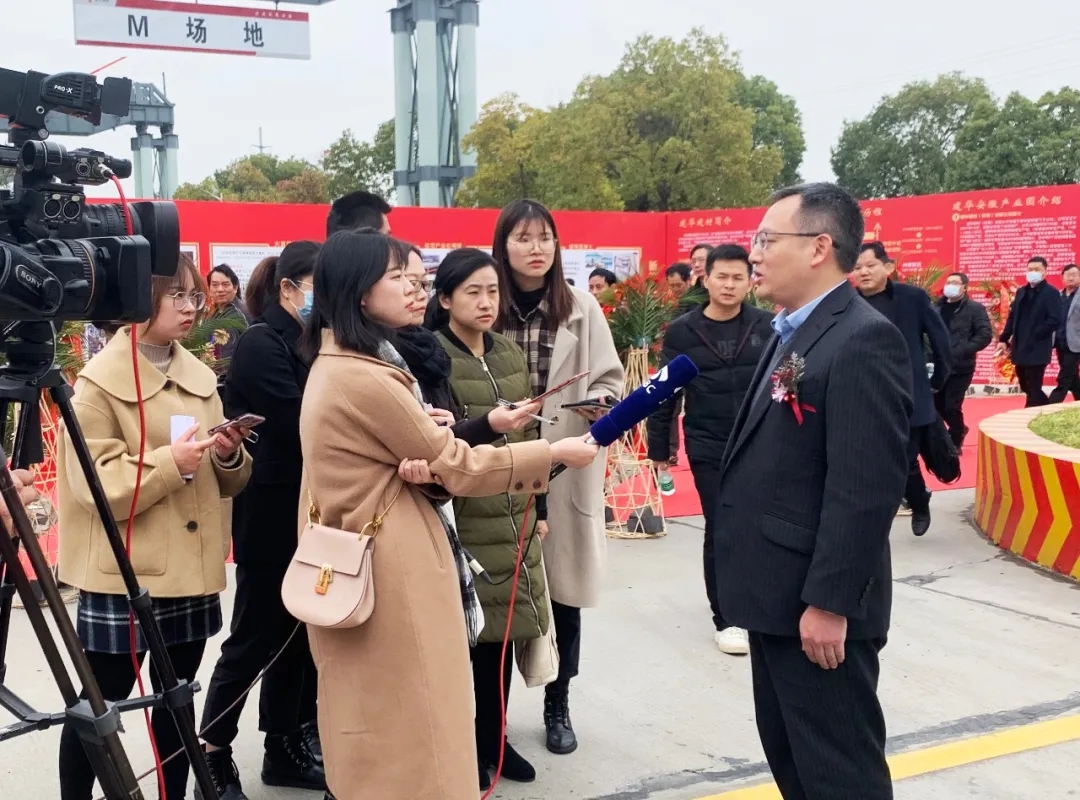 庆典仪式后,建华建材集团总裁何海平先生接受了媒体记者的采访,他表示,安徽建华全线投产后,基地产能将大幅度提升,对满足安徽区域、长三角区域的市场需要提供保障。安徽建华顺应市场变化积极调整产品结构,为满足市场需求及时加大了产能投入,已迅速成长为集团绿色建材生产的“主力军”,希望安徽建华能进一步实现装配式建筑、高性能工程复合材料在长三角地区的推广应用,为芜湖繁昌建设发展做出更大贡献。