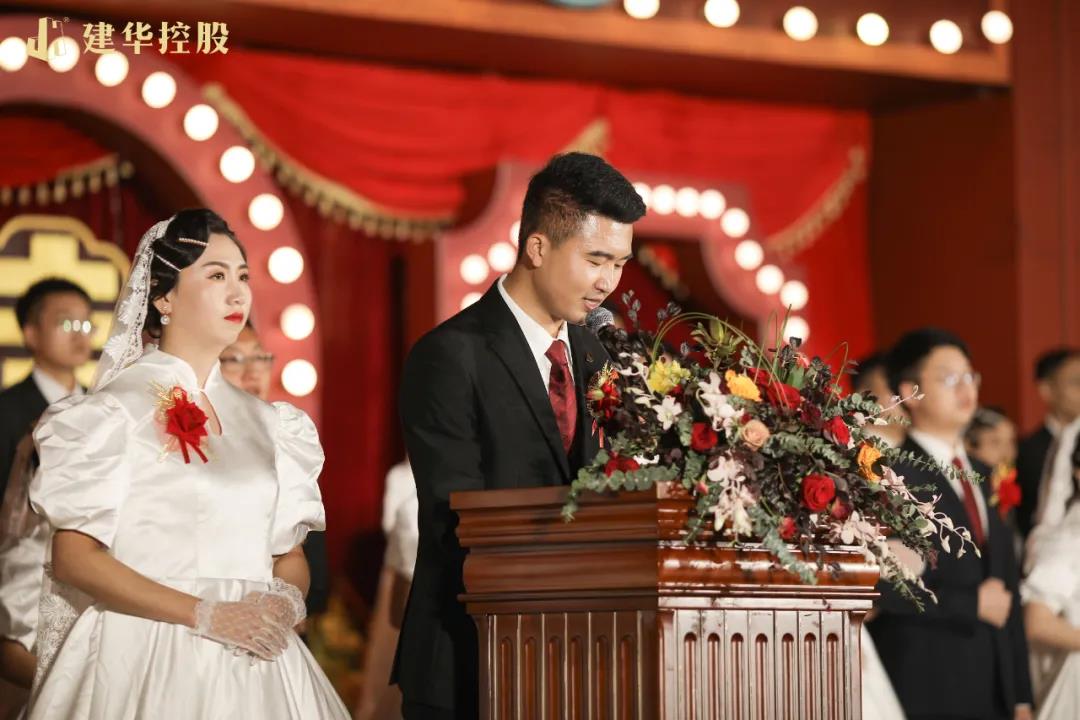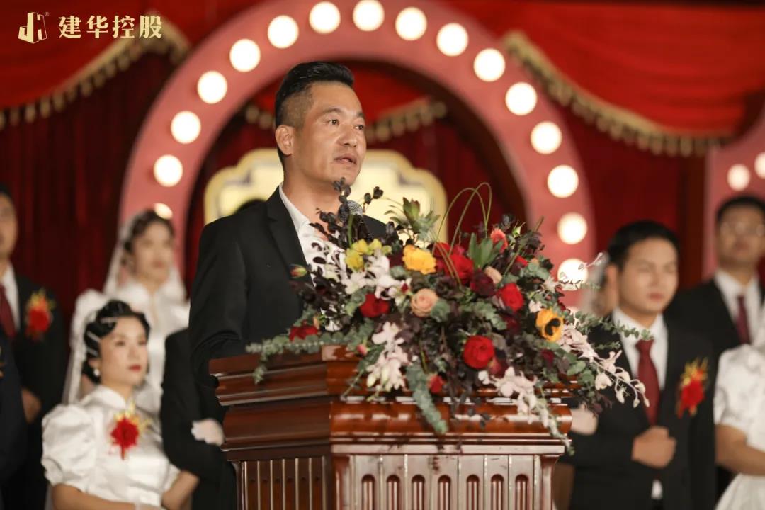 建华建材集团董事长王刚先生为新人送上真挚祝福,希望他们在今后的工作、生活中,践行“走正道,负责任,心中有别人”的企业文化,在建华大家庭中成就自己的小家庭,共同创造生活甜蜜、事业有成的美好未来!