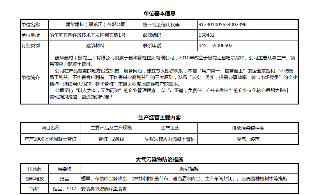 建华建材(黑龙江)有限公司2010年成立于黑龙江省哈尔滨市宾西经济技术开发区,是混凝土制品与技术综合