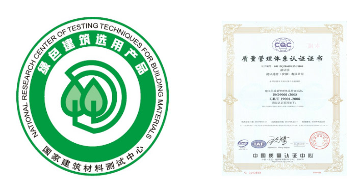 1.2015年通过中国建材检验认证集团“绿色建筑选用产品”认证;